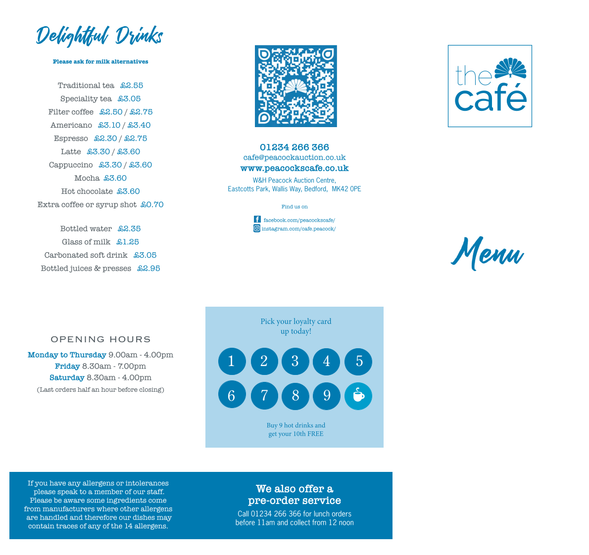 The Café at Peacocks Menu